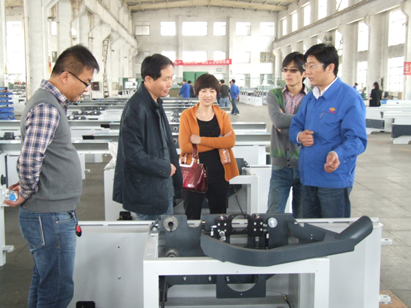 為了更好的展示工友產(chǎn)品,公司對原有的產(chǎn)品展示大廳進行了改造。新的展示大廳不僅按照產(chǎn)品類型劃分展示區(qū)域,還專門設立了精品區(qū),擺放目前最新的拳頭產(chǎn)品,以便于客戶更加直觀的了解產(chǎn)品。與會經(jīng)銷商首先參觀了產(chǎn)品展示大廳,重點駐足在精品展示區(qū),調(diào)試人員現(xiàn)場演示設備,技術研發(fā)人員現(xiàn)場為客戶講解新產(chǎn)品的功能特點、性能參數(shù)、產(chǎn)品的主要優(yōu)勢、賣點等。經(jīng)銷商們認真傾聽并不時提出疑問,研發(fā)人員、質(zhì)檢、銷售業(yè)務等人員耐心解釋。在參觀展示廳之后,經(jīng)銷商們在木機事業(yè)部經(jīng)理董品洲的陪同下,參觀了部分生產(chǎn)車間,讓經(jīng)銷商們近距離的了解產(chǎn)品的生產(chǎn)過程,感受工友精益求精的制作理念。