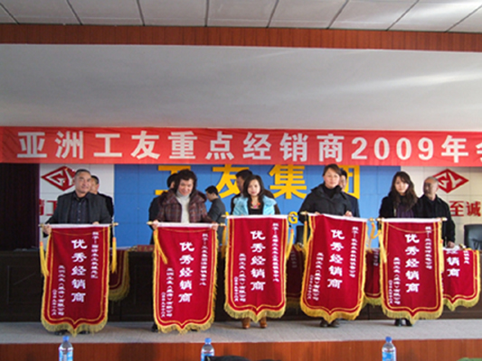 最后董事長董延偉做了題為《務(wù)實(shí)求新 和諧共贏 蓄勢待發(fā)》的報(bào)告。會(huì)上董事長首先對各位經(jīng)銷商的到來表示歡迎,一年來公司在廣大經(jīng)銷商的支持努力下,戰(zhàn)勝金融危機(jī),取得了可喜的經(jīng)濟(jì)效益。公司能夠戰(zhàn)勝前所未有的金融危機(jī),廣大經(jīng)銷商功不可沒,董事長對廣大經(jīng)銷商盡心盡力開拓市場表示感謝。他說,今天我們廠商歡聚一堂,就是要共商工友集團(tuán)發(fā)展大計(jì),探討如何在一個(gè)新的歷史起點(diǎn)上,團(tuán)結(jié)和動(dòng)員各位合作伙伴,發(fā)揚(yáng)務(wù)實(shí)求新的精神,不斷開拓進(jìn)取,合力開創(chuàng)工友各項(xiàng)事業(yè)的嶄新局面。董事長簡要的回顧了公司一年來工作所取得的成績。這一年里,公司緊扣市場的脈搏,進(jìn)行了企業(yè)內(nèi)部大調(diào)整,增強(qiáng)內(nèi)功。在企業(yè)管理、技術(shù)研發(fā)、降本降耗、改進(jìn)工藝提高產(chǎn)品品質(zhì)、鞏固并拓展?fàn)I銷網(wǎng)絡(luò)等方面下足了功夫,使公司在克服金融危機(jī)帶來不利影響的同時(shí)增強(qiáng)了實(shí)力。會(huì)上,董事長重點(diǎn)談了明年公司各項(xiàng)工作的規(guī)劃并對經(jīng)銷商提出了三項(xiàng)要求。他說:“我們廠商精誠團(tuán)結(jié)戰(zhàn)勝了金融危機(jī),國內(nèi)市場取得了不菲的成績。今后廣大經(jīng)銷商要隨時(shí)掌握市場的信息,不斷調(diào)整營銷策略,擴(kuò)大經(jīng)銷規(guī)模,把工友產(chǎn)品及時(shí)推向市場,為廣大用戶提供滿意的服務(wù),實(shí)現(xiàn)廠商共贏?!彼Mㄟ^經(jīng)銷商大會(huì)來表達(dá)公司最真摯的感激之情,從而回報(bào)與公司唇齒相依的經(jīng)銷商們,并熱切的希望創(chuàng)建一個(gè)友善、和諧的溝通交流平臺(tái),為工友集團(tuán)在未來的市場表現(xiàn)中更加出色,希望經(jīng)銷商廣泛提意見,公司會(huì)廣納善言,改善不足。