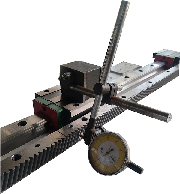 ◆齒條安裝時,均采用千分表檢測齒條面與導(dǎo)軌的平行度,每臺機床做好詳細精度檢驗記錄。